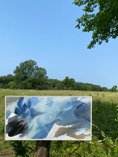 I create paintings deeply rooted in specific places and moments in time, often in collaboration with local land trusts, farms, and trails. My process begins with spending time outdoors—exploring, observing, and learning. It usually ends with a display of paintings back in the open air; I often exhibit my work on trails or other outdoor venues.